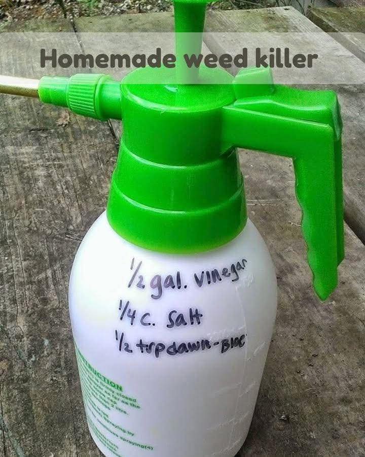 Homemade weed killer 1/2 gallon vinegar 1/4 cup salt 1/2 teaspoon blue dawn dish soap Read more on next page