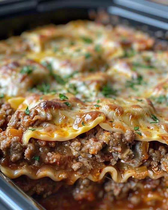 Slow Cooker Sausage and Peppers Ravioli Lasagna